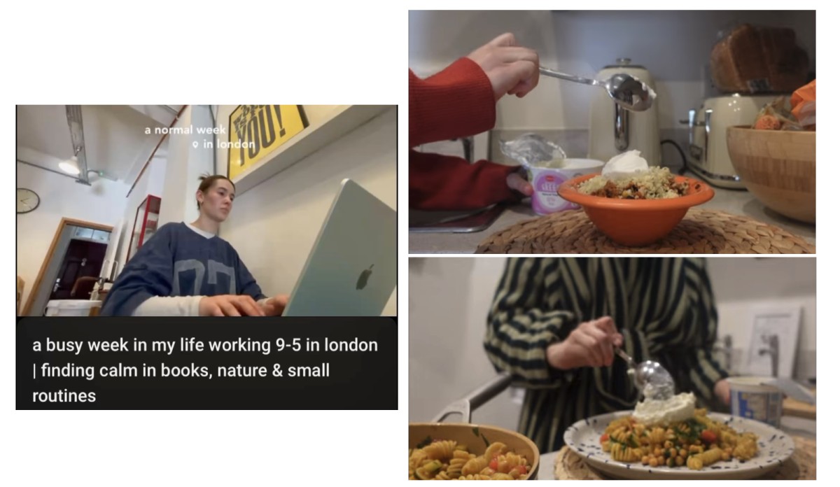 冒頭のボウルのベースはぷちぷちしたbarley(麦)ですね。これも食物繊維リッチな主食。その後出てくる、クリームやナッツで味付けされた「黄色いポリッジ」彼女はどこかでレシピを得てきたと話していますが、外食ではなかなか見つからない、家だからこそできる、自分のための栄養リッチなボウルです。